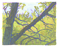 Four of my gouache paintings are included in another show that opens soon after and roughly two thousand miles directly west (full disclosure: 279 degrees) of Philadelphia.