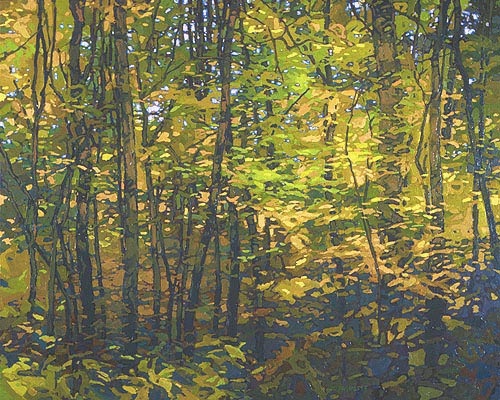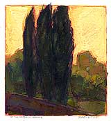 | VIBRANT EXCURSIONS: PAINTINGS BY THOMAS PAQUETTE Many artists travel to broaden their experience and understanding of people and places. However, all creative minds travel in another sense of the word. "To see a world in a grain of sand," as William Blake wrote, artists need not venture beyond their studios. Their work, whether painting, poetry, or music, is their voyage. Thomas Paquette (born Minneapolis, 1958) travels in both senses. He has journeyed far and wide across the United States and Canada, and to Europe. His paintings depict and celebrate the places he has visited, but they reveal another sort of adventure as well. Paquette's oils and gouaches tell of his experience in the studio, the place where he translates and distills what he has witnessed in the outdoors. They reveal the orchestration of color, composition, and the physicality of paint, as well as his aspirations to impart the magnificence of nature to his audience. Paquette's excursions begin with engagement in the landscape, whether hiking, sketching, or contemplating. The location may be familiar one he has visited many times over the years, or it may be a new place that he has yet to explore. The particular quality of light and land forms are noted, either mentally or in pencil sketches on paper. Sometimes Paquette works on site, using the opaque water medium gouache that allows him to work quickly and make changes easily (see At the Forum, Rome, below).