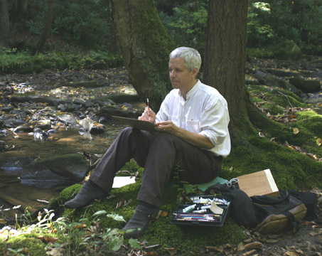 ![]() Whether it's a tiny, postcard sized gouache, a 14" x 16" oil on hemp, or a wall-sized installation at a college, Thomas Paquette brings to his work the hand of a gifted artist and the spirit of a true poet. In the following recent interview you'll come to better understand what drives that spirit, keeps it strong, and keeps it evolving. A native of Minneapolis, Paquette has lived for a time in southern Illinois, Miami, Florida, and the state of Maine. Since 2001 he has resided in northwestern Pennsylvania, where his creative powers are fed by the intrinsic depth of beauty found in the nearby Allegheny National Forest. His residencies in Italy, Greece, England and Wales have only enhanced his work, drawing on nuances that might otherwise have gone untapped. Enjoy the interview, but look at Thomas Paquette's work. Look into the art, and be drawn into the world of subtle drama and dramatic beauty he finds in ordinary places. All of the light, darkness and shadow - as well as the insinuation of hue and tone - nature and life are expressed. MS - At what point in your life did you know that you are an artist? TP - I believe that we are all born potential artists. Most of us make art until we think we are better suited to other things. I just never wanted to stop. I loved drawing and painting and was saddened when peers I thought were good gave it up. Until I went to college, I seemed to be the last lonely man standing. I had an epiphany of sorts when I was twelve about the direction I felt my life should take. A dog ripped into my right hand and in my fear I thought it would have to be amputated. The only thought I had after that - and it really shook me to the core - was how was I going to be an artist now? After that moment I valued my passion for art in a new way, and tried to make sure that nothing would prevent me from being an artist. MS - What most inspires your work? Sights, sounds, nature, music, people, etc.? TP - Most simply, I get excited to see colors do new things. It could be on a canvas or in a scrap of red light filtering through the trees and coloring a solitary tree trunk. As subject matter, I find the natural world full of endless variations not only in form but also in color. Too, I am inspired by other art. The subtlety of the Renaissance masters, the wafting colors of Bonnard, the delicious mayhem of Kiefer. I am the guy at museum whose nose practically touches the paintings, unable to keep my distance. I would probably eat the stuff right off the canvas if it weren't toxic. MS - What part of the creative process do you find most exciting or engaging? TP - I think the part that most excites and engages me is just before a painting is done. All the great and small color shifts, all the balanced shapes and configurations of the painting, everything comes to a kind of crescendo at that point. And since I never actually have precise plans for a painting - only inklings of direction as I move from interest to interest across the canvas - it is somewhat mesmerizing as I see it begin to coalesce into a whole in the end. MS - How do you make the choice of the manner and the materials you use in your work? TP - I like to shake things up as often as possible to avoid habit and ossification. Sometimes paintings are thick with impasto, other times just a thin film across the canvas, sometimes bright, sometimes dimly glowing. It is often a matter of choice in materials and tools. I have perhaps over a thousand paint brushes in my studio, from 00 sables to 4 inch hardware brushes, all ready to change my preconceptions about painting when I feel trapped by a method, material, or tool. The enemy of creativity is predictability. MS - Do you render sketches or an under painting before you begin a project? TP - My paintings begin in all sorts of different ways, but one thing I never do is draw with any detail on the canvas. I learned not to do that a long time ago. A painting evolves for me and can hardly be prescribed. As an example, one medium-sized painting began with some small trees in the median in a highway. Within a year - and after many shifting compositional changes - it became a broad marsh. The painting took a serious turn (literally, from a horizontal to a vertical) a couple years later when it became an northern river during spring ice out. If I still had the painting in my possession, I might well be tempted to change some little thing (this is how it always begins, innocently: just a little color change here, a little drawing change there), that might completely alter it again into who-knows-what. So drawing details at the start would only add more insanity than is wise. MS - You’ve done everything from postcard sized gouaches that are exquisite to monumental sized commissions. Emotionally, what is the difference in your approach to works which vary so widely in size? TP - I am not sure there is an emotional difference in my approach to such varying scales. In all works I seek a certain point at which the painting seems to come alive in its own peculiar way. The biggest difference is that the large ones tend to take far longer to realize, and so I tend to contemplate the creative options more before I commit them, to make each application of paint as meaningful as possible. It takes a more deliberate intensity to accomplish, whereas small works are more malleable in some ways, and prone to more abandon. MS - Discuss which part of the creative process you find most stressful. TP - All of it is stressful if you are doing it right. MS - I’ve read that you sometimes use photography as a touchstone to a memory of a place or scene. Tell us about any special equipment or lenses you may use. TP - Other than little gouaches, I rarely work on site anymore as it has become so counterproductive. Even the gouaches begun on site are usually completed after some revamping in the studio. Temperamentally I am not a plein air painter. My works develop over long periods of time, esp