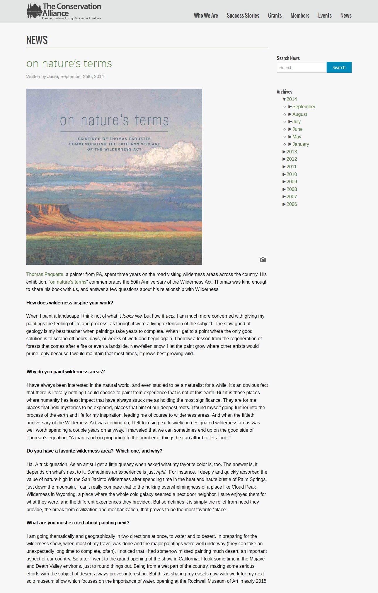 The Conservation Alliance blog interview by Josie Norris October 2, 2014 original location